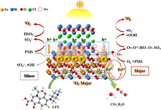 2025年6月3日,太阳成官网硕士研究生罗传发以第一作者在二区TOP《Separation and Purification Technology》(IF= 8.1)发表题为“Synergetic oxygen vacancy and homologous heterojunction into BiOCl/Bi2Fe4O9 for levofloxacin photodegradation: insight of Ov-O*-PMS intermediate toward efficient 1O2 generation”的论文,澳门太阳成集团为第一署名单位。卢丽敏教授、黄喜根教授和谢琰玉博士为共同通讯作者,该研究工作得到了国家自然科学基金、江西省自然科学基金和福州大学能源与环境光催化国家重点实验室开放项目的支持。
